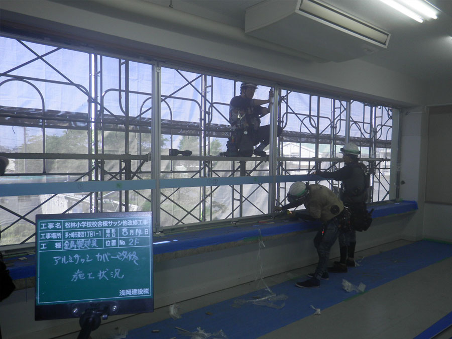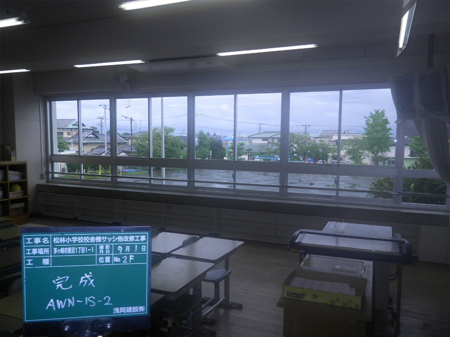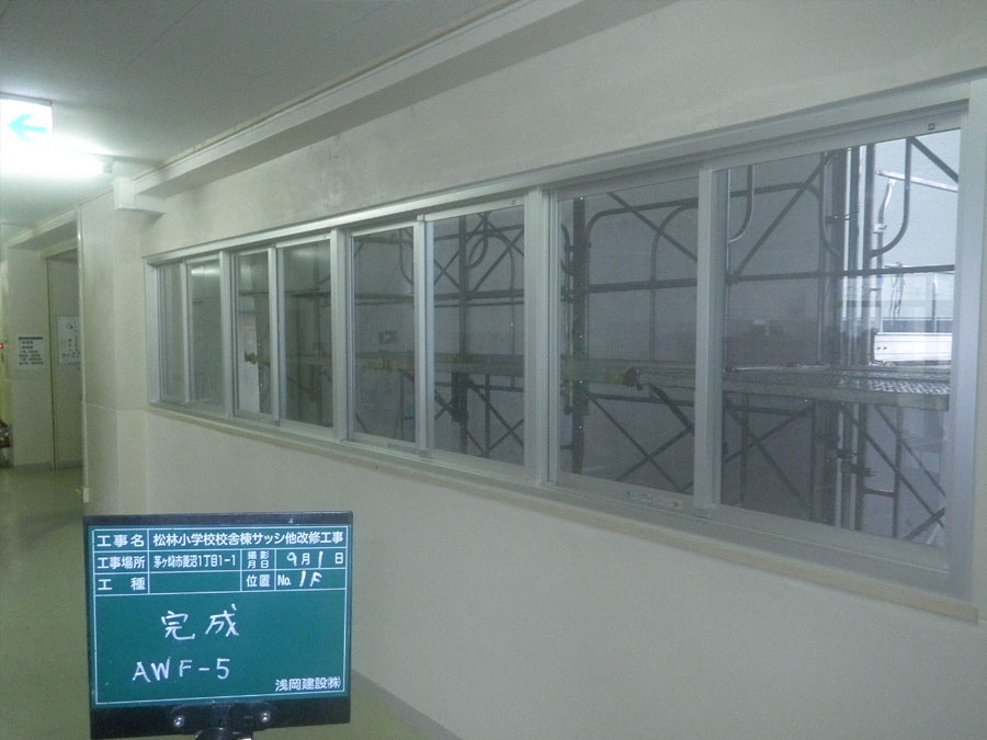| 物件名、又は現場住所、 又は工事名 | 松林小学校校舎棟サッシ他改修工事 |